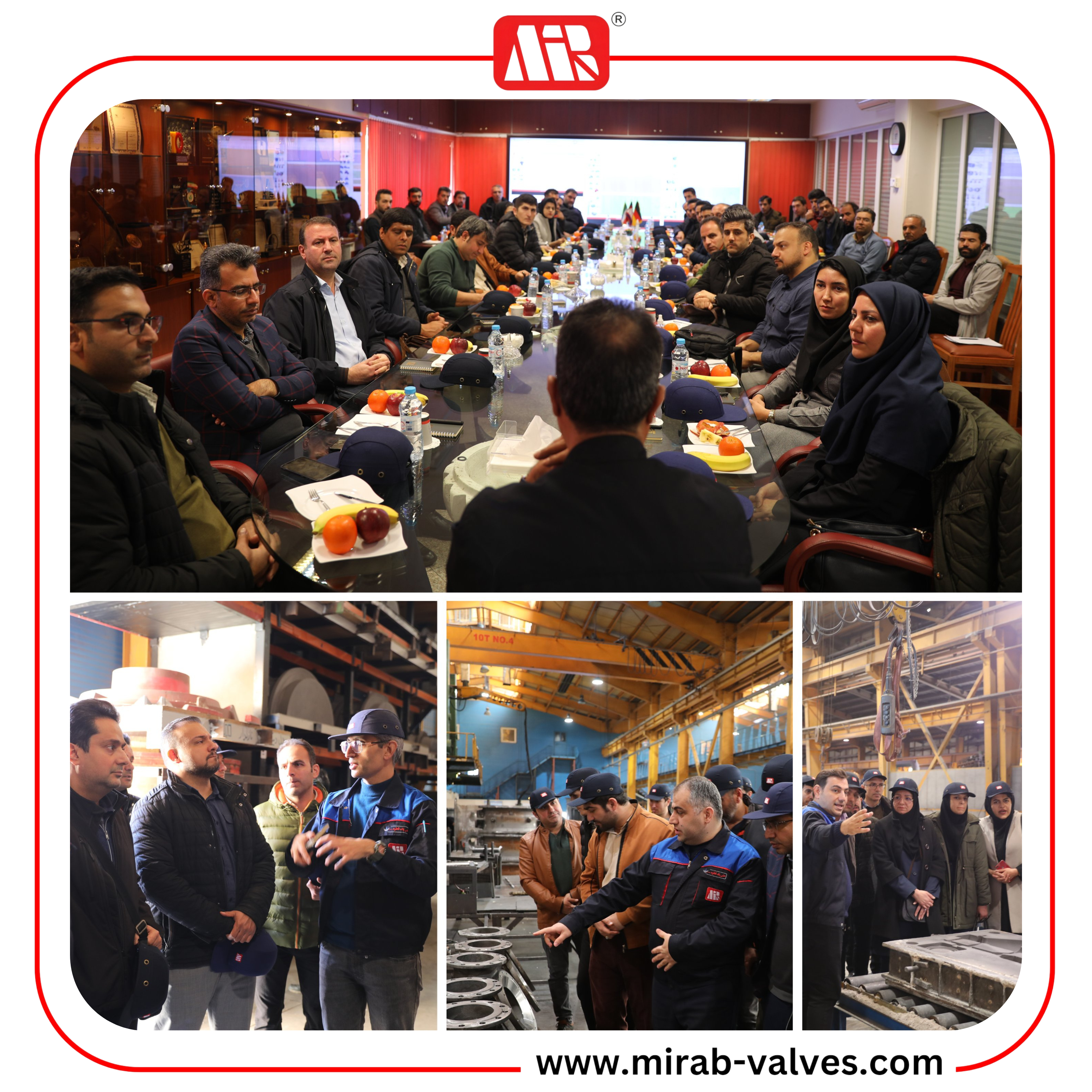 در ادامه، با همراهی کارشناسان فنی واحد فنی مهندسی میراب، از بخشهای مختلف کارخانه بازدید به عمل آمد و از نزدیک توضیحات تکمیلی از مراحل مختلف تولید محصولات ارائه شد. آقای مهندس قشمیپور، بر اهمیت آموزش و ارتقاء دانش فنی در تولید شیرآلات صنعتی تأکید کرد و اظهار داشت که شرکت میراب در تلاش است تا با تحقیق و توسعه مستمر، فرآیند تولید و کیفیت محصولات خود را همواره در سطح استانداردهای جهانی نگه دارد.
