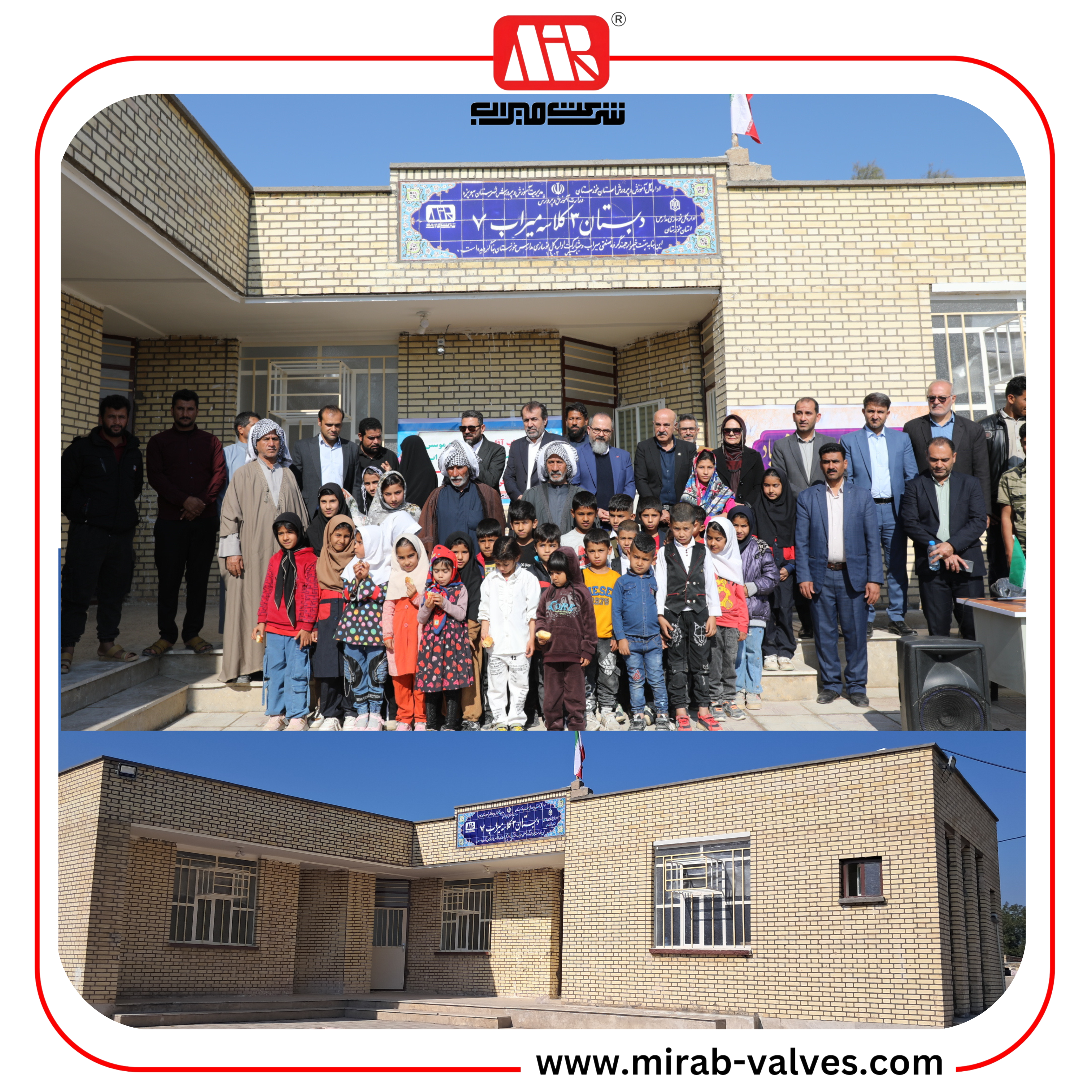 تم افتتاح مدرسة ميراب 7 الابتدائية المكونة من ثلاث فصول دراسية، الواقعة في قرية عتابية، قضاء هويزة، وتشغيلها يوم الأربعاء، 15 يناير 2025. تم إنشاء هذه المدرسة بجهود واستثمار شركة ميراب كجزء من دورها في المجتمع ووفقًا لمسؤولياتها الاجتماعية. في هذا المشروع، شارك السيد غلامي، مدير الشؤون المالية لمجموعة ميراب الصناعية، نيابة عن السيد المهندس توجه، مؤسس شركة ميراب، وكممثل لأعضاء مجلس الإدارة المحترمين. أعلن محافظ هويزة، إلى جانب المسؤولين المحليين، بدء أنشطة المدرسة في حفل، مع تقديرهم لنظرة شركة ميراب الوطنية.